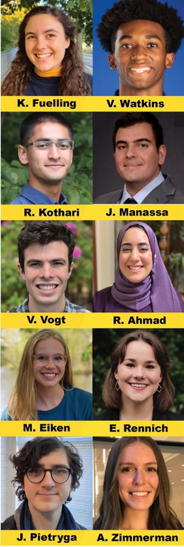Current students who have won a 2023 NSF Graduate Research Fellowship include (top) Kalyn Fuelling '23, Virgil Watkins '23, (bottom) Rishabh Kothari '22, Jason Manassa (PhD, Hovden), and Victor Vogt (PhD, Dasgupta).