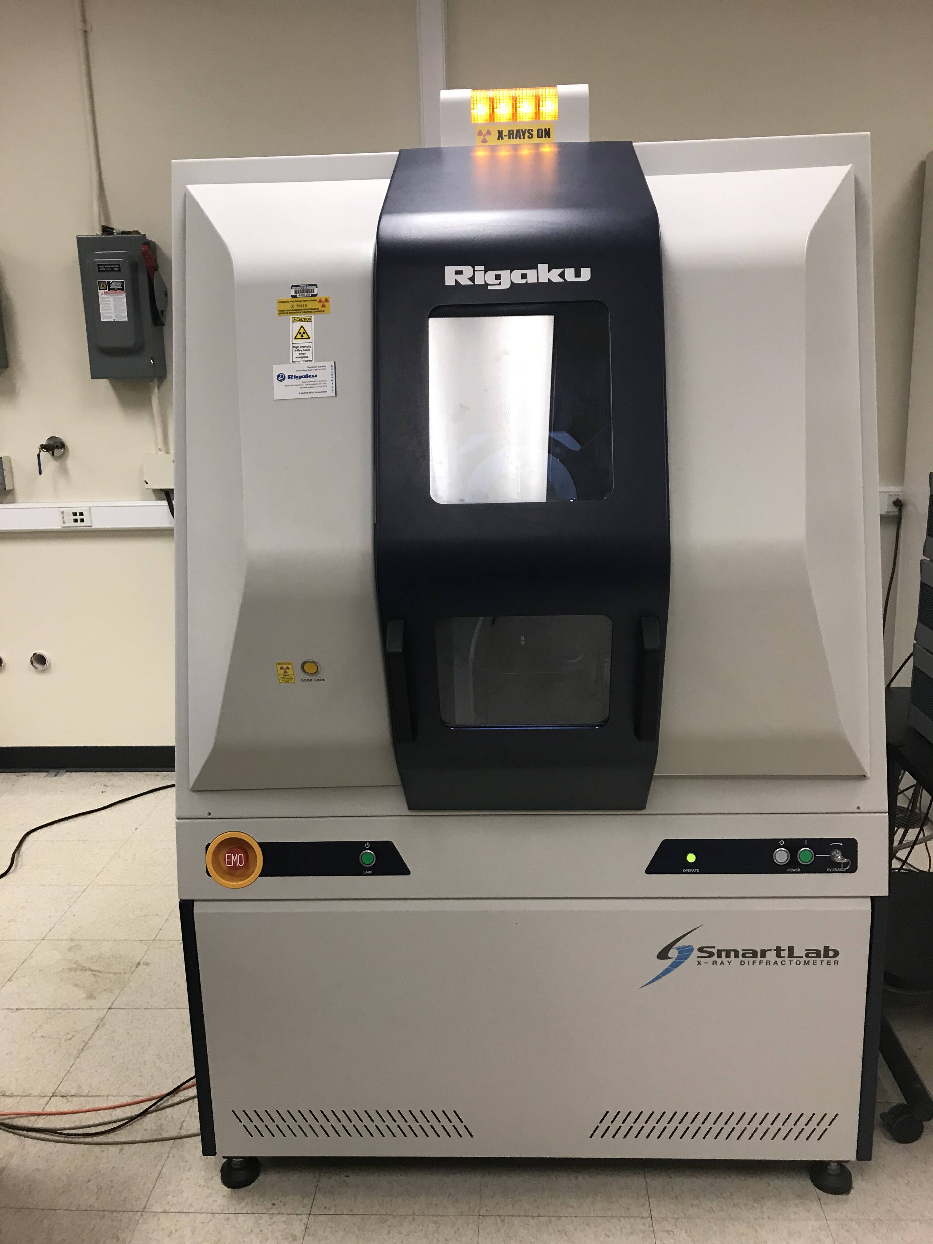 A versatile and powerful X-ray diffractometer. The Smartlab is highly configurable and allows for a variety of measurement types including theta/2-theta scans, pole figure measurements, small-angle diffraction, and more. Thermally controlled stage for both cryogenic and heated measurements is available. Specimens can be solids, powders, or thin films. University radiation safety course and dosimeter paperwork required before training/use. PDXL software for analysis with various databases is available free of charge.