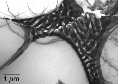 Microstructure of AXJ530Microstructure of a Mg-Al-Ca based die-cast alloy (AXJ530) consisting of Mg solid-solution phase and eutectic structure at grain boundaries. A new intermetallic phase, (Mg, Al) 2Ca, with the C36 structure has been identified in the Mg-Al-Ca ternary system for the first time. The intermetallic compound at grain boundaries has a great contribution to the high-temperature strength of this type of material. (Akane Suzuki, supported by NSF-FRG)
